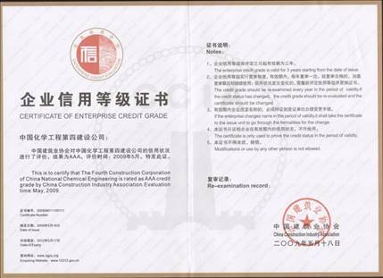 公司在學(xué)習(xí)實踐科學(xué)發(fā)展觀活動中,切實加強(qiáng)信用管理,嚴(yán)格履行合同,優(yōu)質(zhì)安全文明施工,積極推進(jìn)技術(shù)進(jìn)步,自覺履行社會責(zé)任,取得了可喜的成效。近日,經(jīng)中國建筑業(yè)協(xié)會評定,公司獲評首批全國建筑業(yè)AAA級信用企業(yè)。