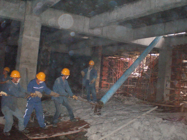 由于施工工期短、安裝量大、要求高,從廣東省、廣州市到區各級領導都相當關注。分公司對此項目也予以很高的重視和期望,選派有豐富施工管理經驗的陳岳剛擔任項目經理,在五月初組織精兵強將全面開始施工。施工中,由于土建施工尚未完成交接,我方安裝工程與土建的混凝土澆筑呈交叉作業,且長期的陰雨天氣導致地面層以下積水過多,潮濕陰暗,項目部克服一切困難,積極與土建單位協調,變被動為主動,給自己騰出施工空間。