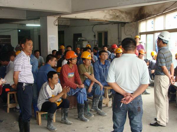 6月11日,華南分公司京溪凈水項目部召開了全體參戰員工大會。華南分公司副經理齊少華、黨支部副書記施建華、工會主席洪東林到現場作動員,強調:該工程是亞運會的配套工程、為廣州市民造福千代的工程,在最后的20天里,要發揚四化建人能吃苦、打硬戰的作風,發揚“團結拼搏求實奉獻”的企業精神,干出中央大企業的風采。項目部現場經理陳岳剛帶頭表決心:一定完成上級交辦的任務,讓廣州市民放心,讓四化建公司放心!克服種種困難,大干苦干也要拿下這硬骨頭!