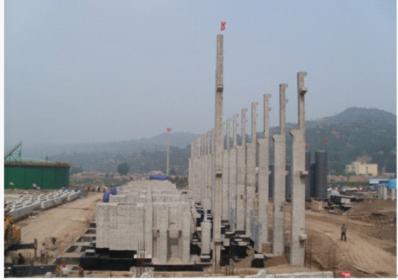 根據(jù)設(shè)計要求,焦爐氣壓縮機廠房所有水泥立柱均采用混泥土一次性預制,最后整體吊裝。每根水泥柱長約19米,重達26噸,因其水泥柱上部有不規(guī)則的牛腿,增加了吊裝難度。項目部精心組織,主導施工隊、吊裝公司、業(yè)主連同監(jiān)理各方積極協(xié)調(diào)聯(lián)系,制訂了嚴密的吊裝計劃,采用160噸吊車進行主吊裝,50噸吊車同時遛尾,并配備了經(jīng)驗豐富的吊裝總指揮,施工總工親自在現(xiàn)場進行技術(shù)支持。