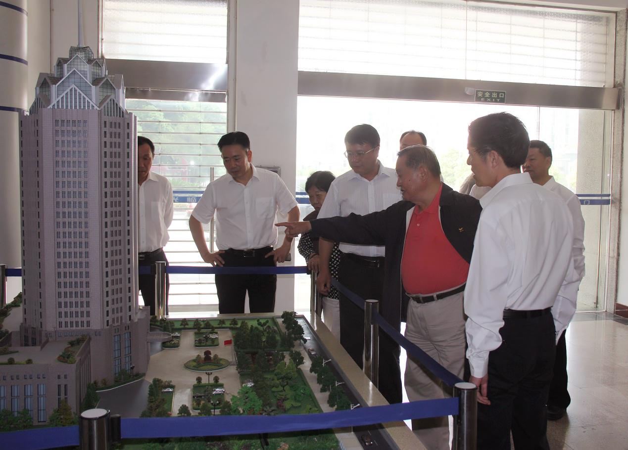 圖為陳邦柱(右二)參觀中國(guó)化學(xué)四化大廈模型