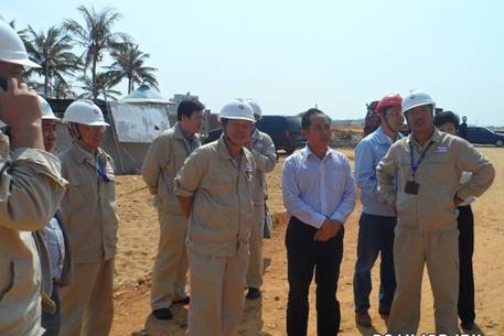 在察看大件設(shè)備準(zhǔn)備工作現(xiàn)場時,吉明江聽取項目經(jīng)理劉興陽簡單匯報后,關(guān)切地詢問了職工到海南來工作、生活習(xí)慣不習(xí)慣。當(dāng)了解到大多數(shù)職工都是兩地分居時,吉明江矚說,一定要多打電話,向家里多報平安。