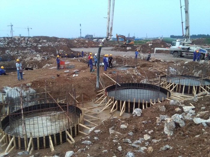 77日下午四時左右,第一批基坑清理完畢,經過業主、地堪公司、監理公司驗收,認為達到了澆注條件,分公司項目部立即協商商混公司,連夜澆注。在晚上八時,注入第一車混凝土,至8日凌晨四時,完成第一批澆注,成為該項目開工的標志。
