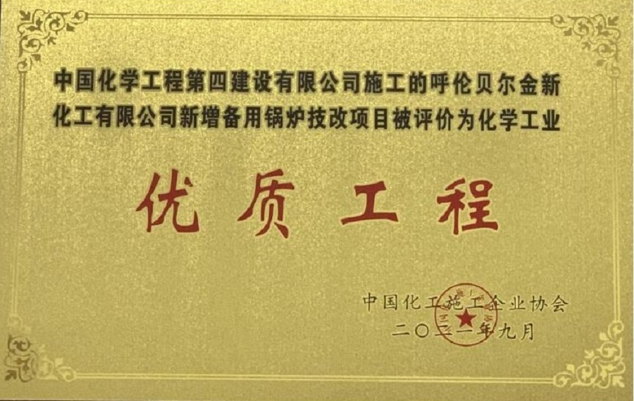 近日,中國化工施工企業協會公布2021年度化學工業優質工程獎項目名單,公司承建的宜都興發化工有限公司300萬噸/年低品位膠磷礦選礦及深加工項目硫酸裝置、呼倫貝爾金新化工有限公司新增備用鍋爐技改項目、江蘇富強新材料有限公司10萬噸/年苯胺項目等3個項目獲得化學工業優質工程獎。