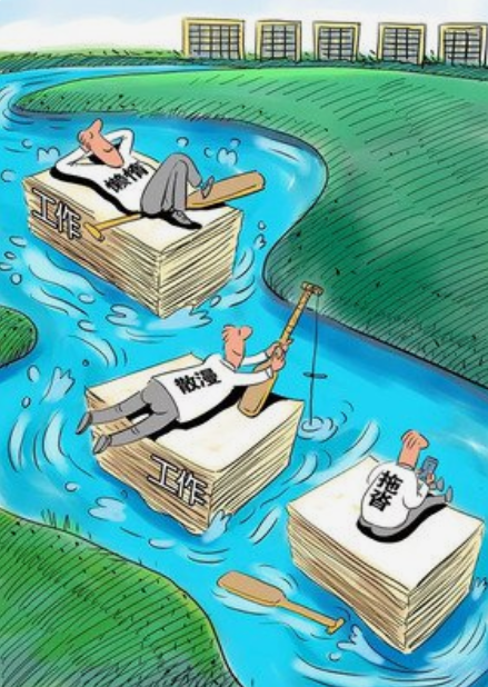 工作的時候玩忽職守、消極怠工,不認(rèn)真,馬虎了事,三天打魚兩天曬網(wǎng)。