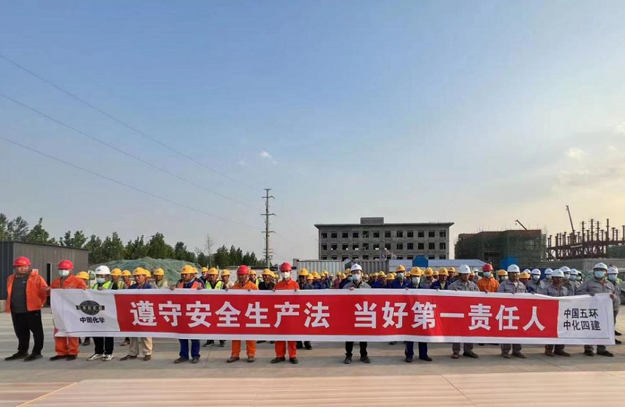 61日,華北公司日照旭科新材料項目部舉行2022年“安全生產月”活動啟動儀式。華北公司黨支部書記、經理吳世慶參加儀式并講話。華北公司副經理、日照項目經理張軍峰及項目部全體人員共同參加了啟動儀式。