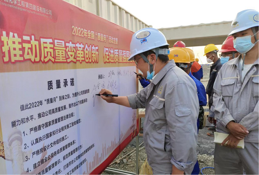 9月5日,華北公司渤化項目部開展以“推動質(zhì)量變革創(chuàng)新,促進質(zhì)量強國建設(shè)”為主題的質(zhì)量月啟動儀式。儀式上,宣讀《2022年質(zhì)量月活動實施方案》,對活動作了詳細部署,深入推進質(zhì)量管理制度化、常態(tài)化,確保“質(zhì)量月”活動取得實實在在的成效。會上要求,廣泛開展質(zhì)量相關(guān)制度培訓(xùn)和質(zhì)量文化宣傳,讓質(zhì)量觀念深入人心。做好質(zhì)量責(zé)任分解工作,做到質(zhì)量目標全員覆蓋,堅決杜絕質(zhì)量安全事故發(fā)生。堅持精細施工,嚴守質(zhì)量標準,以工程品質(zhì)引領(lǐng)企業(yè)高質(zhì)量發(fā)展。全體人員還在活動宣傳標語牌上簽名宣誓。