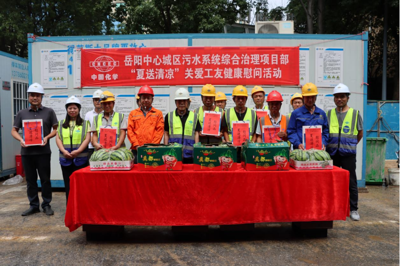 近日以來,岳陽中心城區污水系統綜合治理項目部先后在云夢路、四化建變電力排管工程和云溪巴陵石化片雨污分流改造工程現場開展“夏送清涼”關愛工友健康慰問活動。