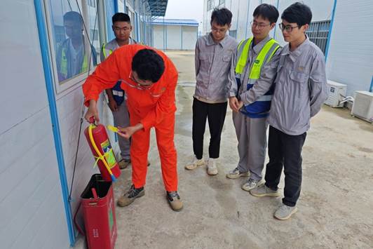 中化勞務(wù)公司岳化新材料項目、東北公司福州華能產(chǎn)投廠外工程項目團員青年組織開展高溫防中暑演練,模擬在高溫環(huán)境下作業(yè)時突發(fā)中暑的應(yīng)急處置流程,確保項目職工在突發(fā)中暑情況下能夠迅速、有效地進行自救和互救。江西公司平煤項目團員青年組織開展火災(zāi)應(yīng)急疏散演練以及滅火器使用培訓,引領(lǐng)項目部職工掌握安全操作規(guī)范以及火災(zāi)安全撤離方法。華南公司開陽中偉磷酸鐵項目團員青年組織開展防觸電安全應(yīng)急演練,編制觸電事故應(yīng)急預案,學習施工人員工作時意外觸電的正確救助方法,提升應(yīng)對突發(fā)事件的應(yīng)急處置能力和組織協(xié)調(diào)能力。