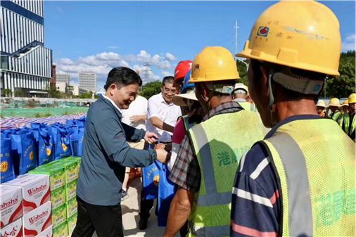 盛夏時節,驕陽高照,熱浪滾滾。近日,湖南省總工會黨組成員、副主席劉再衡深入到港晨建設公司岳陽自貿片區數字經濟產業綜合體建設項目工地,開展“夏送清涼”慰問活動,為高溫下的建設者送去夏日清涼。