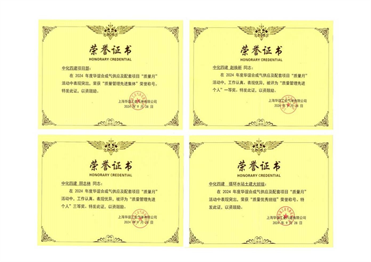 近日,上海華誼工業(yè)氣體有限公司召開合成氣供應(yīng)及配套項(xiàng)目“質(zhì)量月”活動總結(jié)大會,華東公司華誼項(xiàng)目部獲評質(zhì)量先進(jìn)集體,項(xiàng)目部職工趙煥新、朋志林分別獲評質(zhì)量管理先進(jìn)個(gè)人一等獎和三等獎,項(xiàng)目部循環(huán)水土建大班組獲“質(zhì)量優(yōu)秀班組獎”。