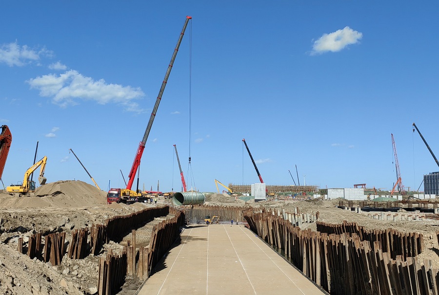 施工中,項目部按照山東裕龍石化業主調整的工期節點要求,組織開展項目分析、細化進度節點、深入發展動員,克服工程量大、時間緊、任務急,以及9月多雨等不利影響,以“上足時間、占滿空間,全力確保工期節點順利完成”為目標,深入組織開展突擊大干活動。經過1個多月的奮戰,順利完成裕龍三路15、16號箱涵長360米、寬18米、高1.5米的大體積混凝土筏板合攏,高質量完成了業主下達的高難度任務。(通訊員  陳琛)