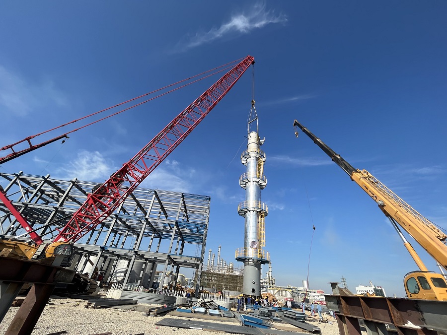 11月1日,由西部公司承建的湛江中捷新材料項目順利完成T-207精制D塔的吊裝,標志著該項目設(shè)備安裝正式啟動。