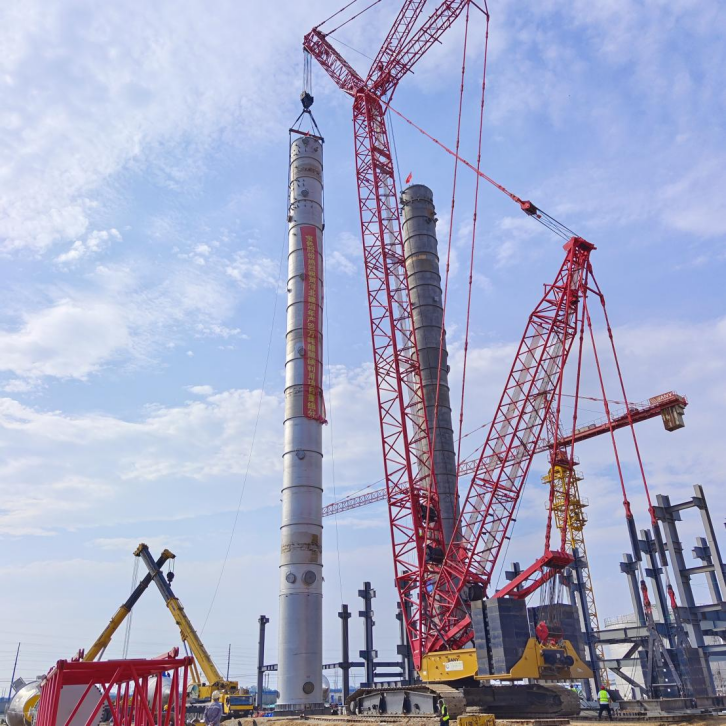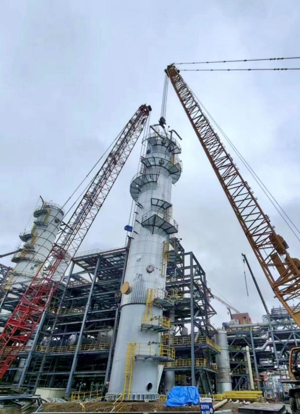 為響應公司“奮戰四季度、決勝雙百億”號召,中秋國慶雙節期間,項目部全體人員堅守施工一線,確保項目吊裝等各項工作穩步推進。此次吊裝的輕組分塔規格為Φ3636×59100、設備自重123噸,重組分塔規格為Φ3940×65800、設備自重175噸,是項目主裝置的關鍵設備。