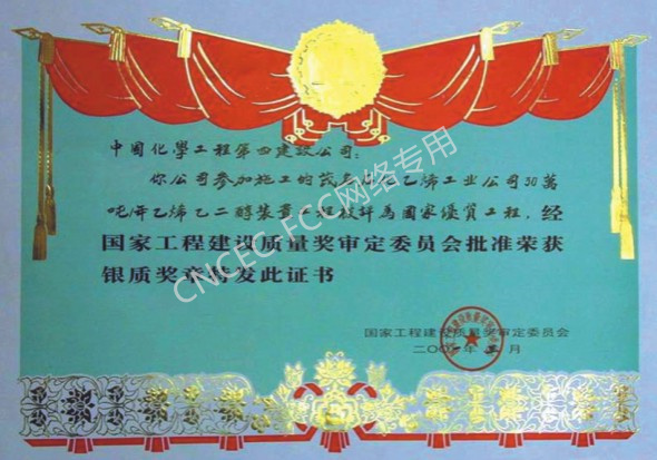茂名30萬噸乙烯工程乙二醇裝置國家優質工程銀質獎